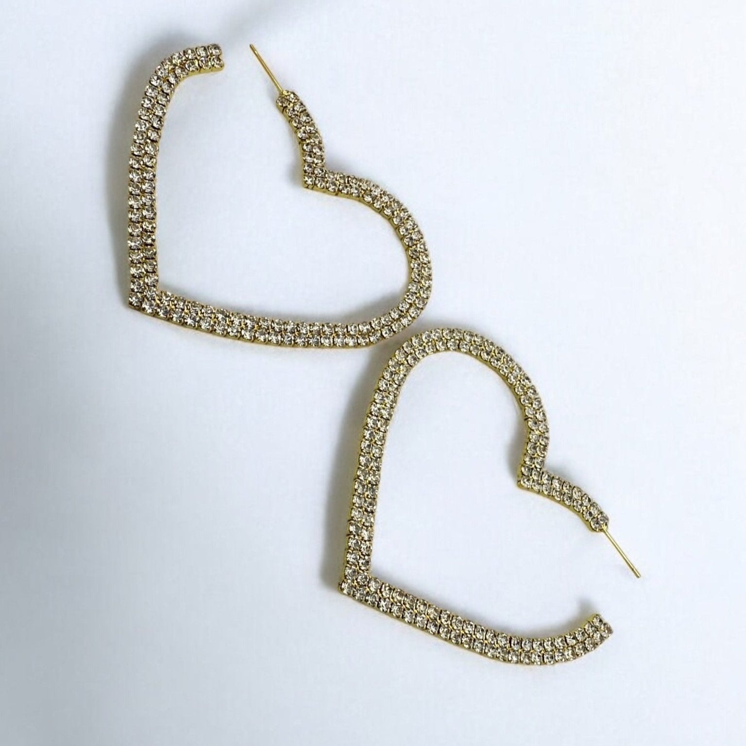 Heart-Shaped Rhinestone Hoop Earrings | Gold or Silver Crystal Statement Hoops by Fatisha