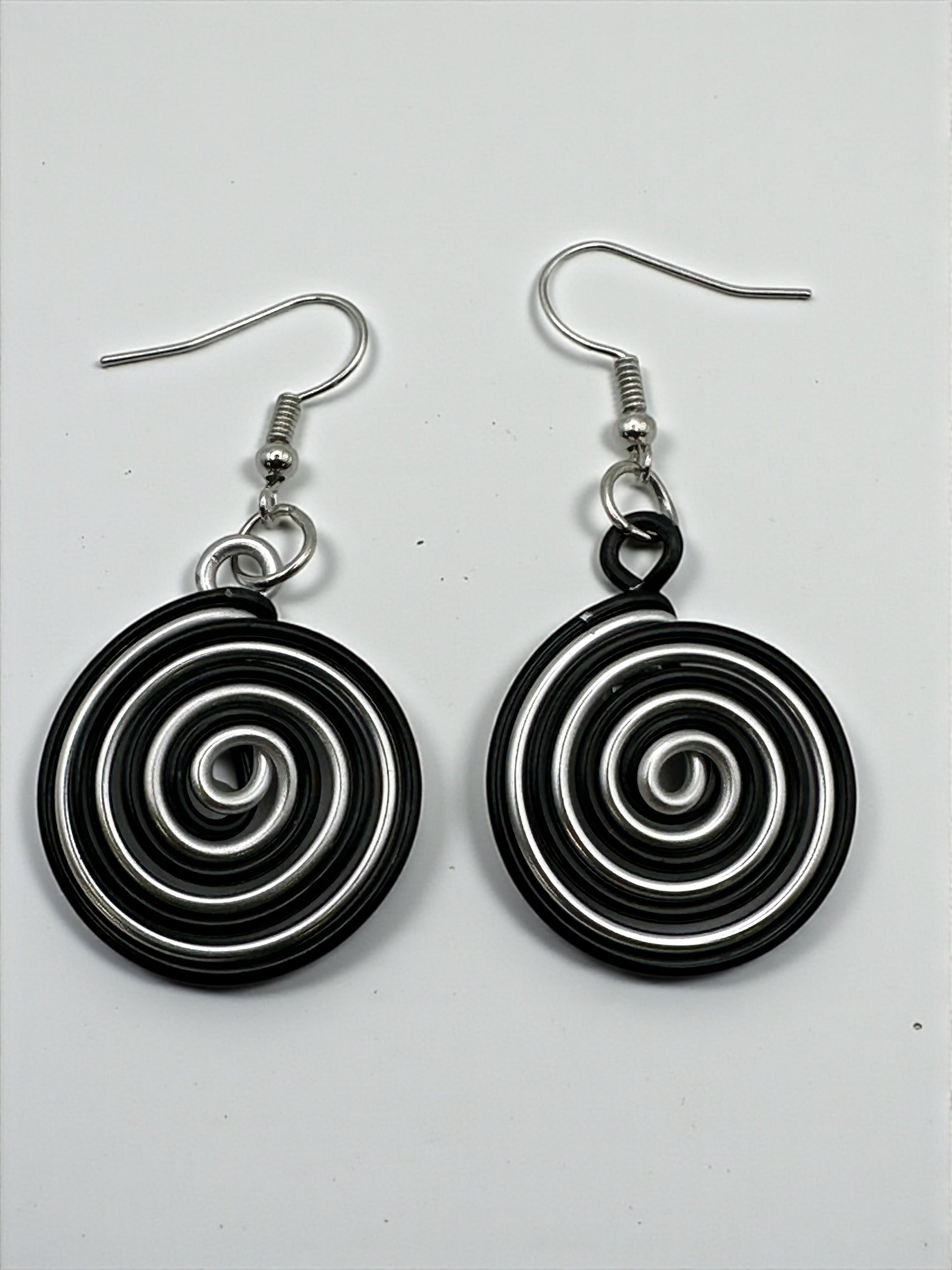 Bold Black & Silver Spiral Wirework Crystal Statement Necklace & Earrings Set