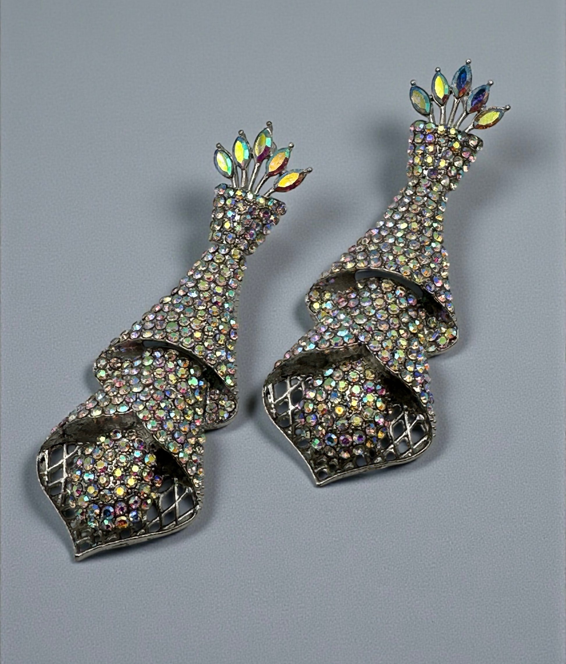 Turn every entrance into a moment with these Elegant Crystal Spiral Cascade Statement Earrings, designed to shimmer from every angle. These earrings feature a sculptural spiral silhouette wrapped in hundreds of high-sparkle crystals, finished with marquise-cut iridescent stones at the top for a luxurious, couture feel.