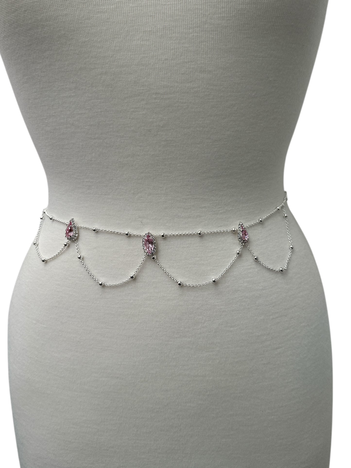 Elegant Rhinestone Belly Chain – Pink Crystal Waist Jewellery in Gold or Silver