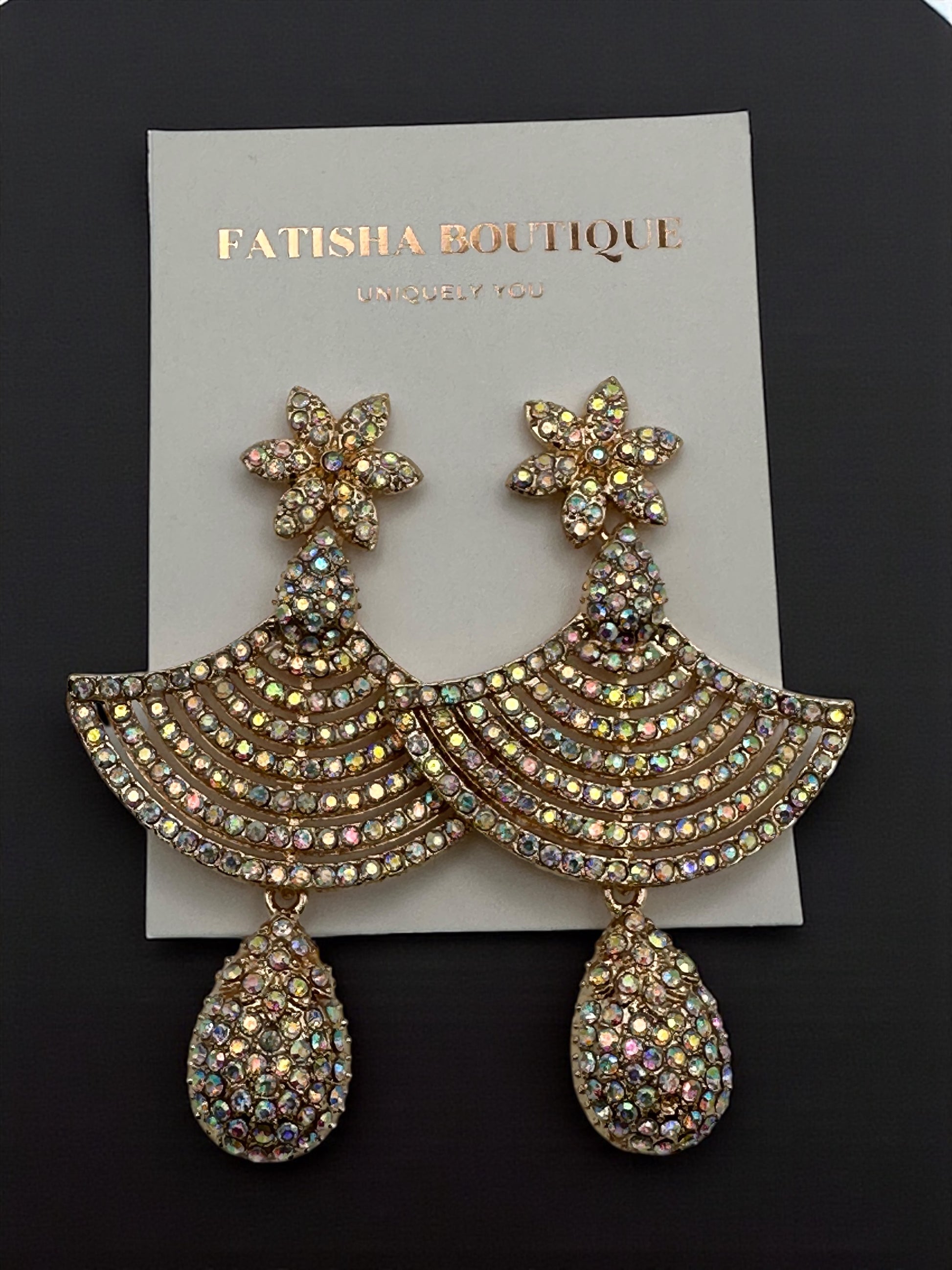 Floral Fan Crystal Statement Drop Earrings – Gold & Silver