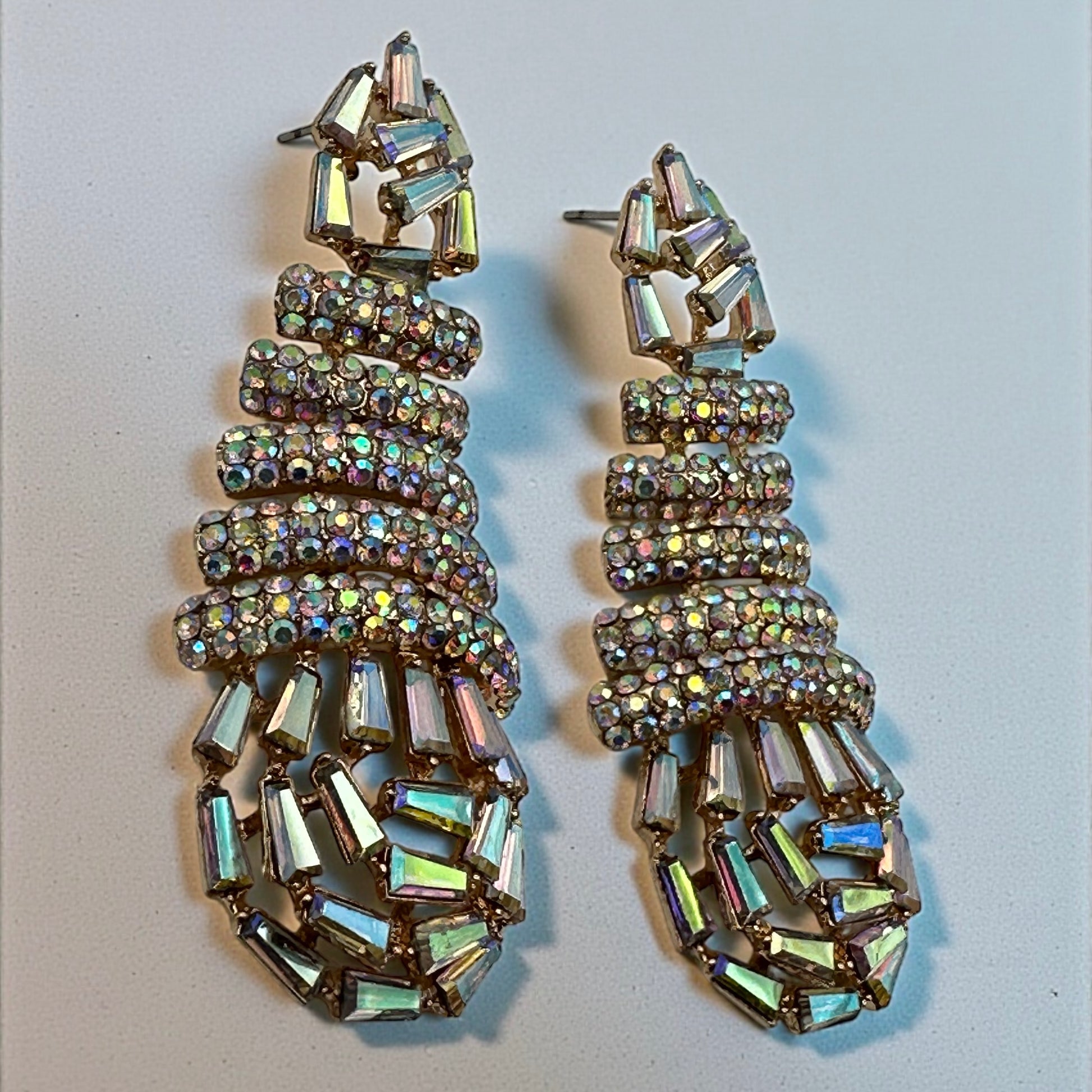 Glamorous Multi-Layer Baguette & Crystal Statement Drop Earrings – Gold & Silver