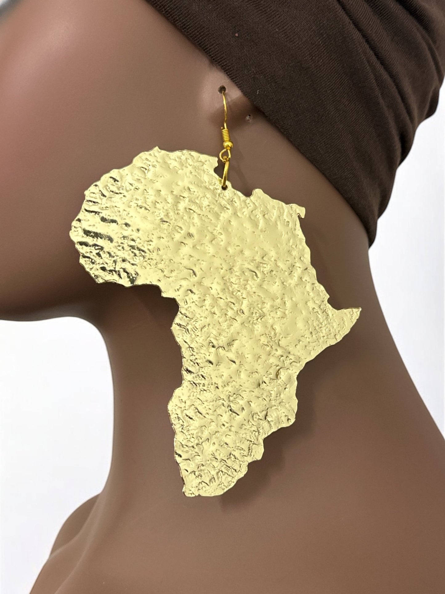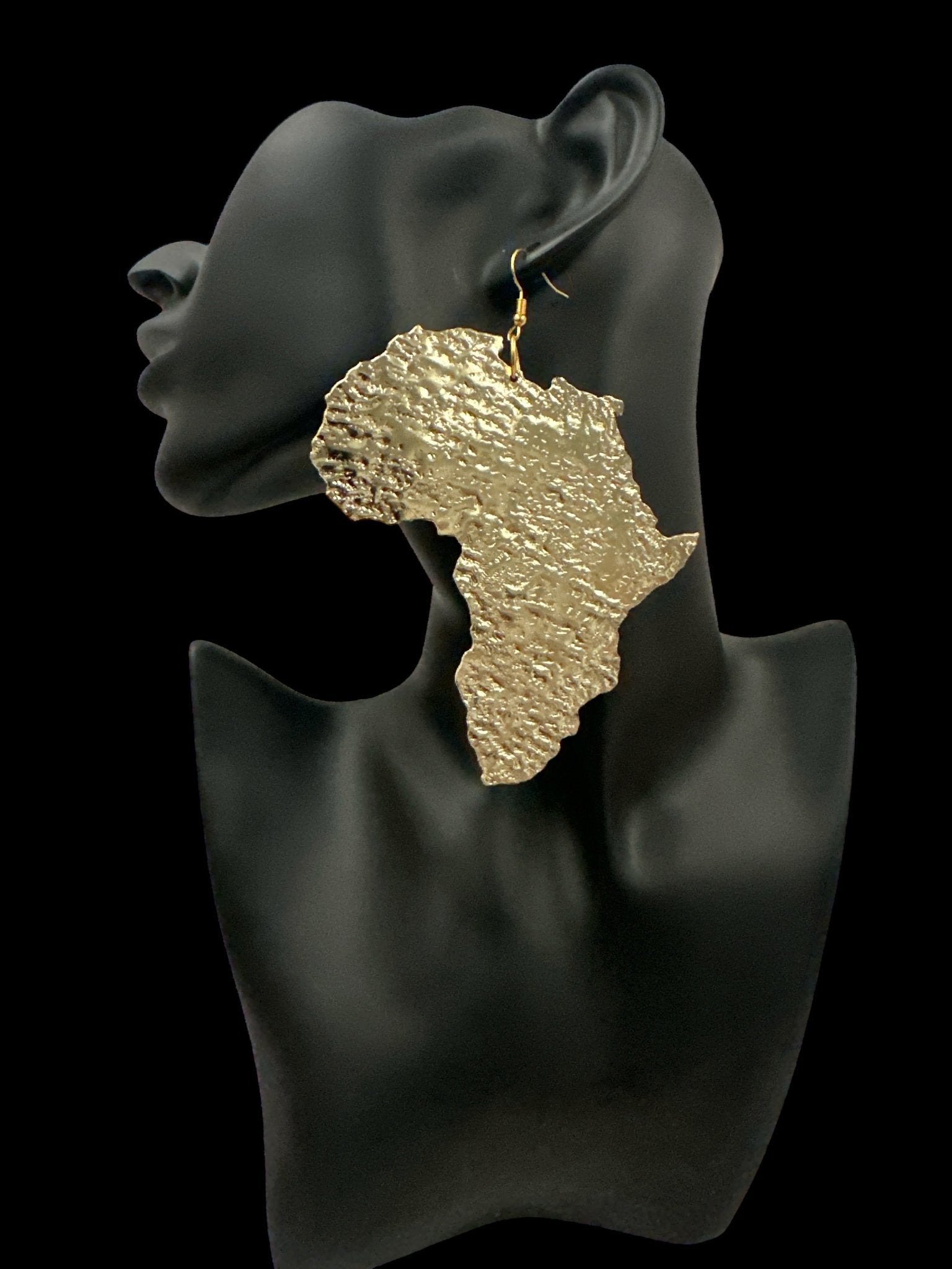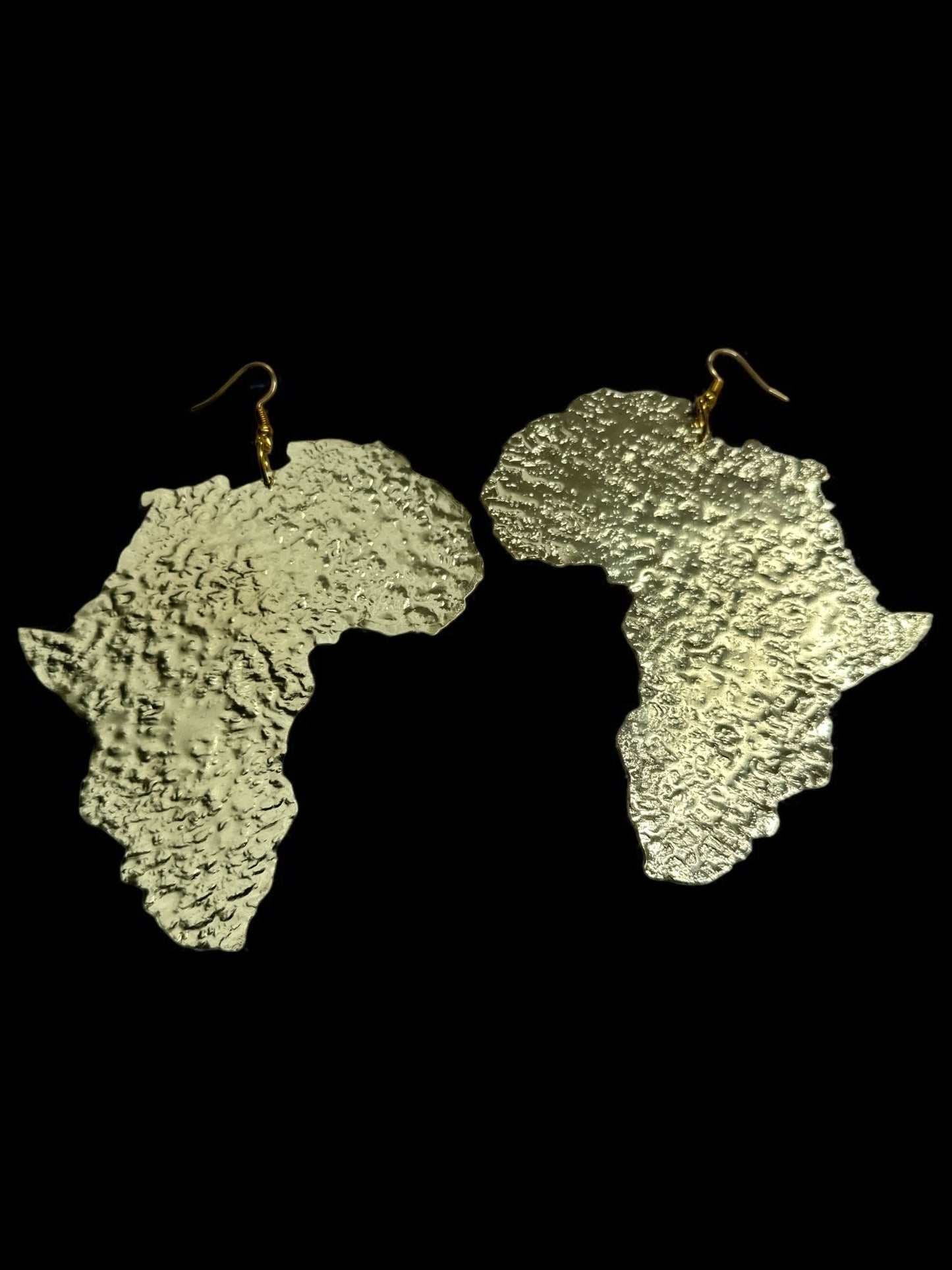 Oversized Africa Map Earrings – Afrocentric Brass Statement Jewellery