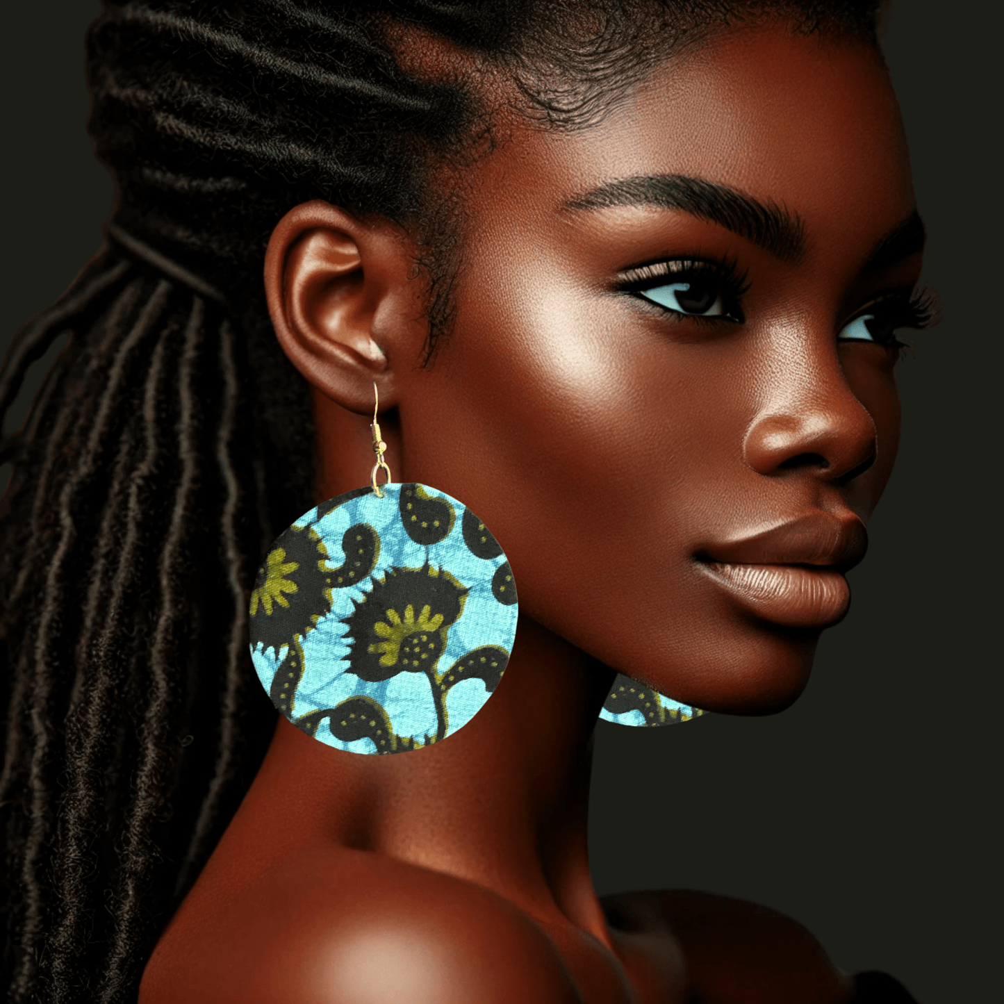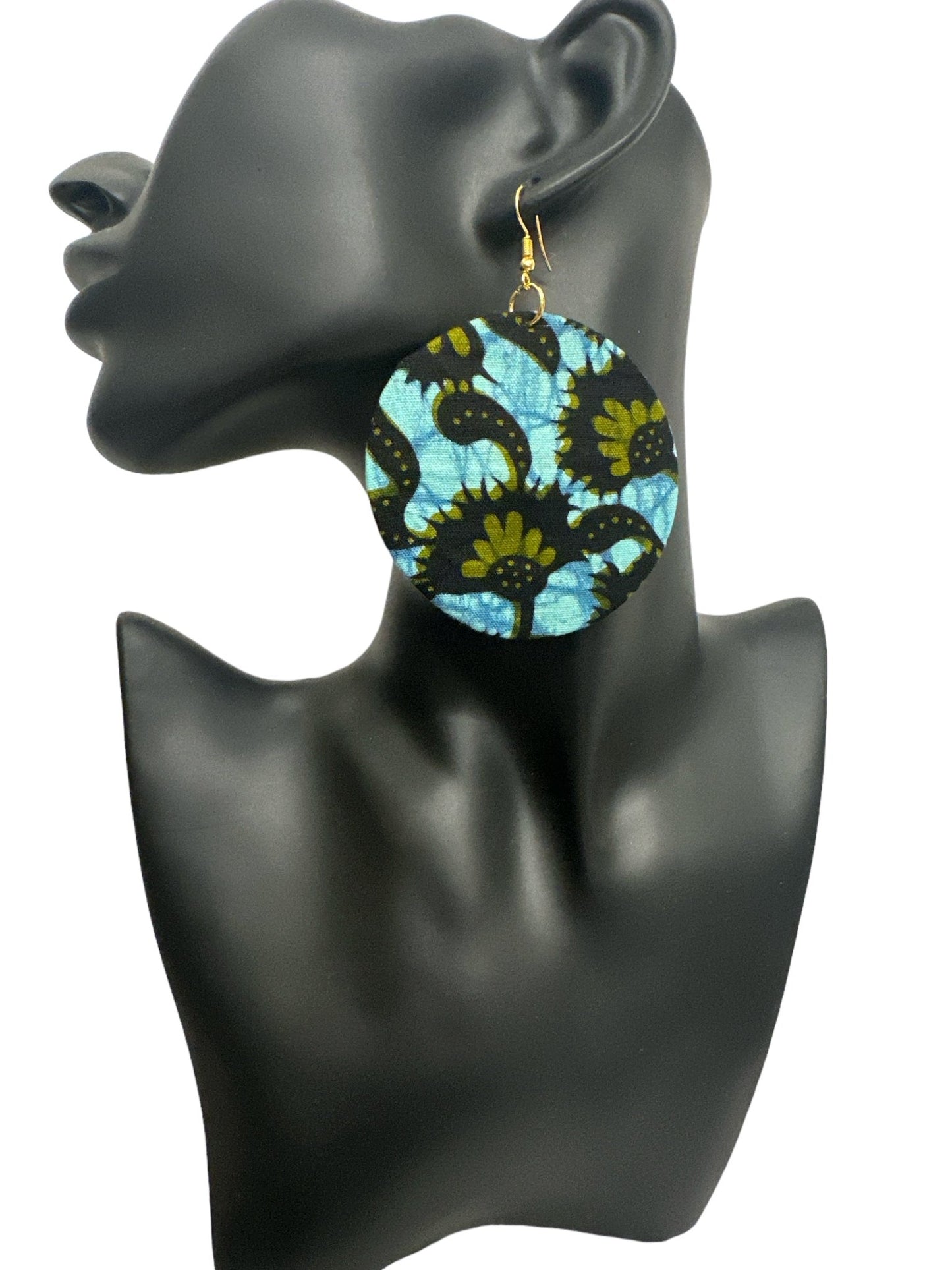 Add a touch of African elegance to your style with these lightweight round dangle earrings. Crafted from high-quality cotton fabric in a vibrant Ankara print, these earrings are perfect for any occasion. The hook closure ensures a secure fit while the dangle/drop style adds a fun and playful element to your outfit. Ideal for a variety of outfits, whether you're dressing up for a special occasion or adding a unique touch to your everyday look, these earrings are sure to make a statement.