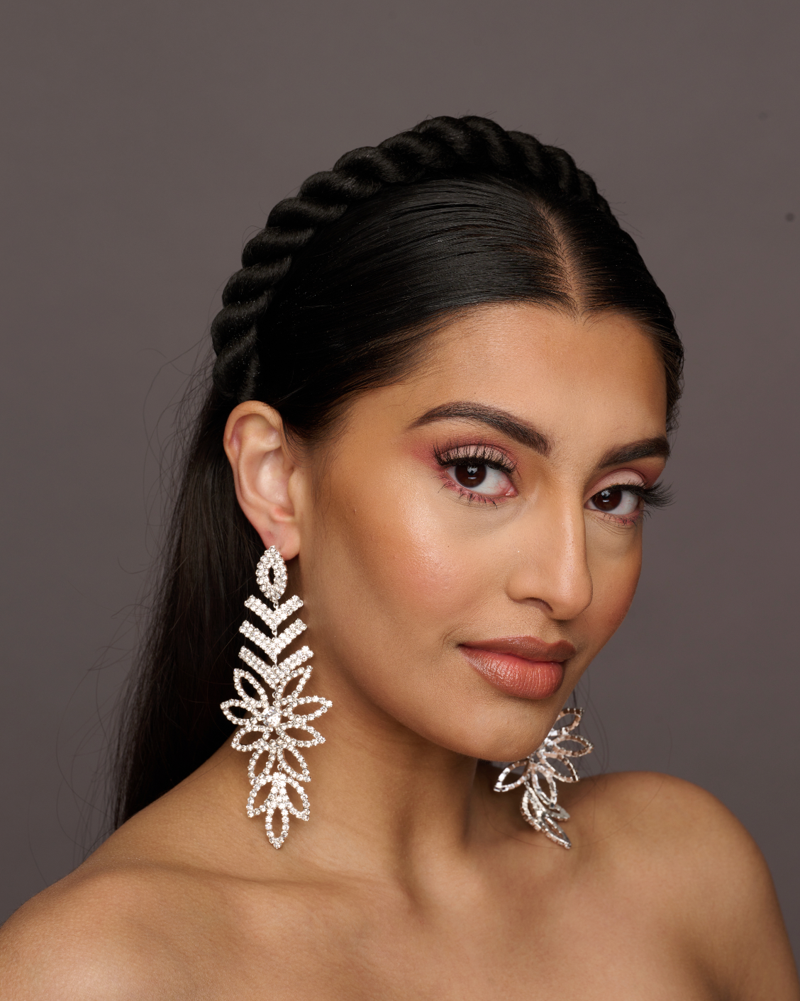 Elegant Floral Rhinestone Dangle Earrings – Statement Drop Jewellery in Gold or Silver