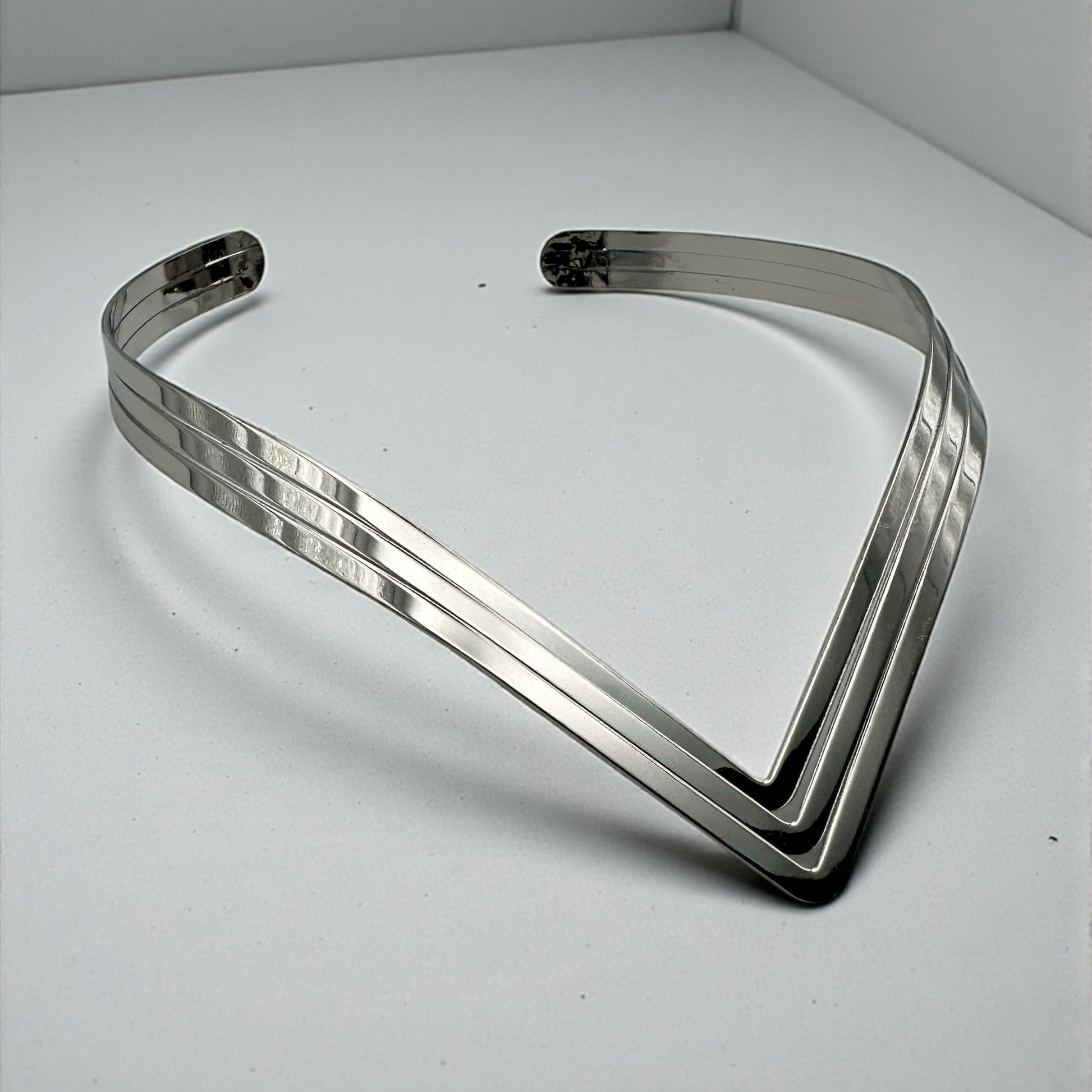 Premium metal layered V-shape choker