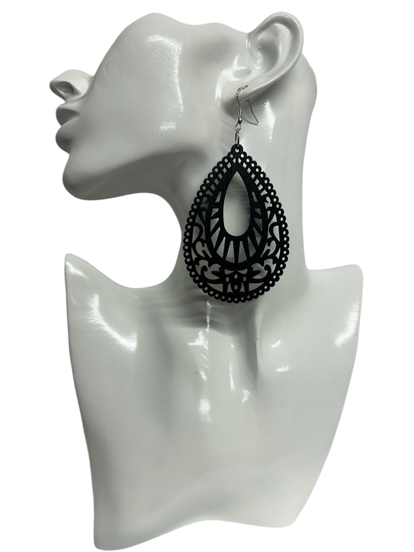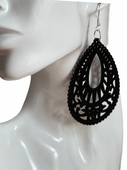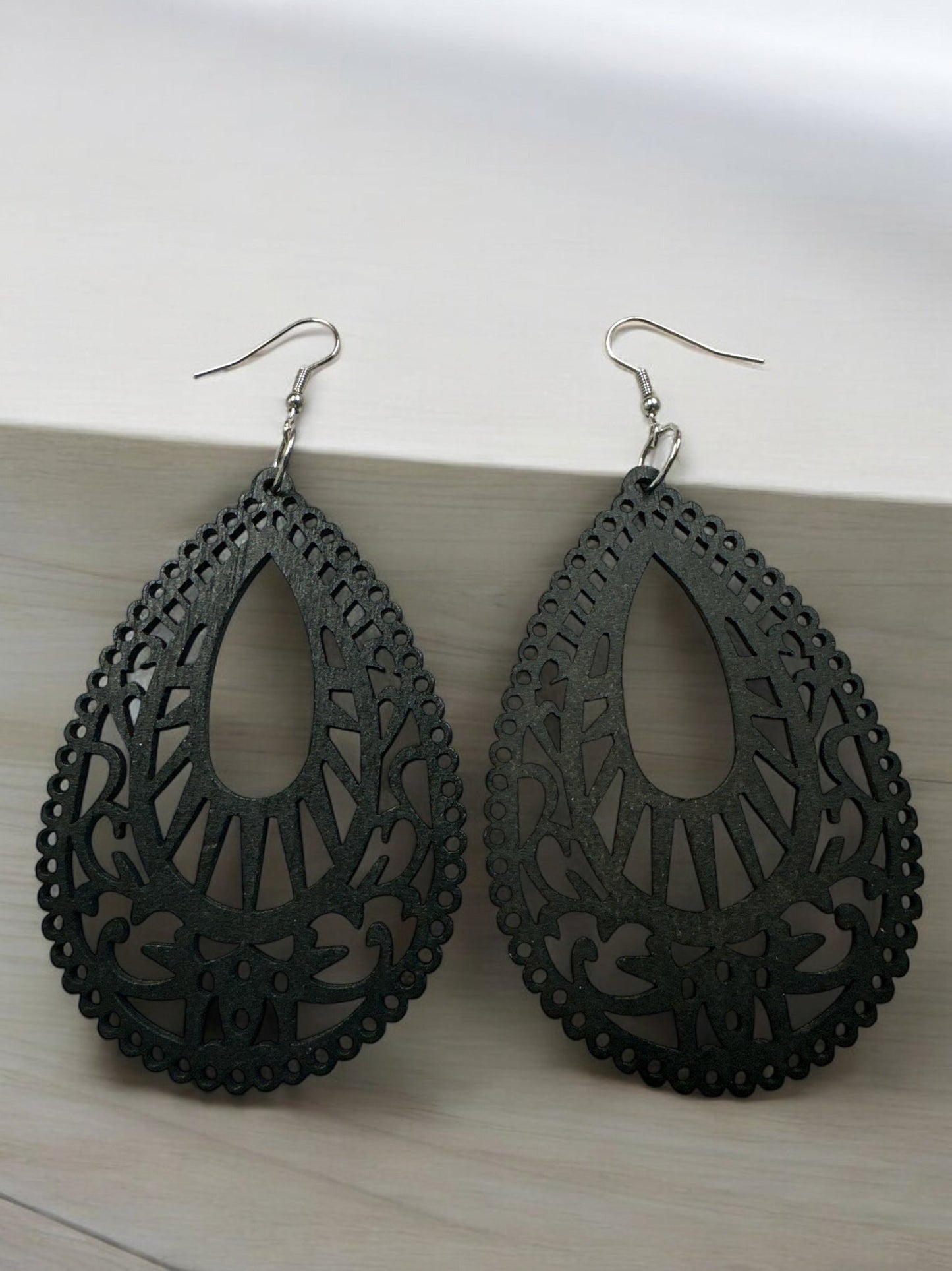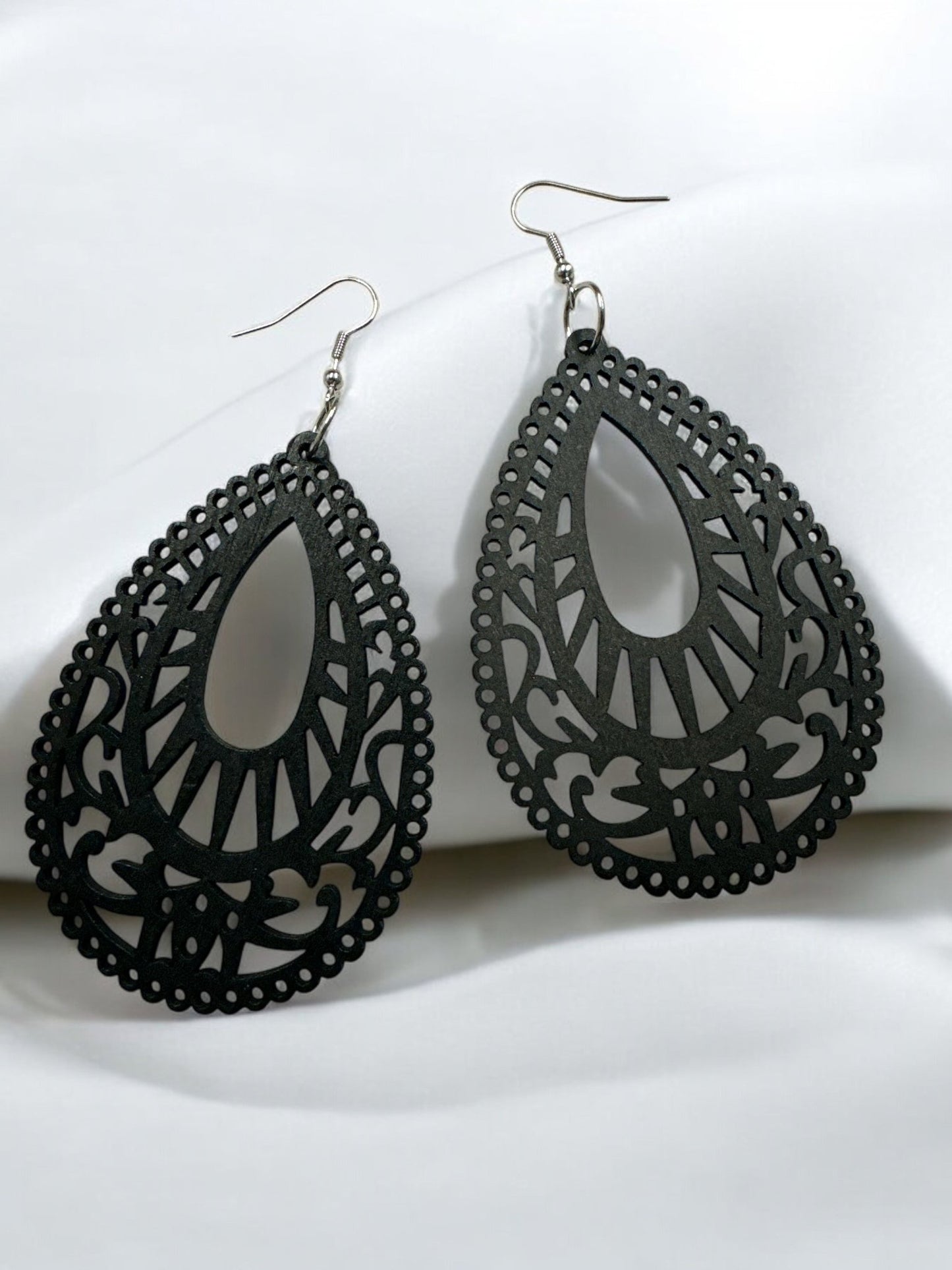 Add effortless charm to your look with our Laser-Cut Wooden Teardrop Earrings, available in classic black or natural wood. These intricately designed earrings feature delicate lace-like patterns carved into lightweight wood, offering a stylish and ethnic boho vibe. Perfect for everyday wear, summer outfits, or cultural expression. Comfortable to wear all day, with stainless steel hooks for sensitive ears. Hand-finished and made to stand out.