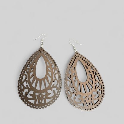 Laser-Cut Wooden Teardrop Earrings – Lightweight Boho Ethnic Style | 2 Colours