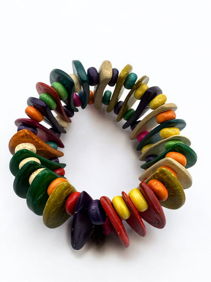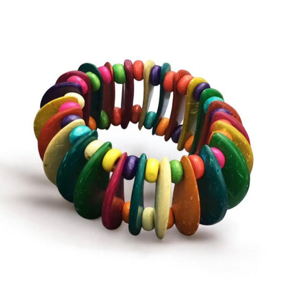 Handmade Coconut Shell Beaded Bracelet – Multi-Coloured Eco-Friendly Bangle