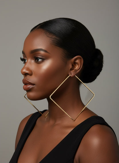 Big Oversized Square Hoop Earrings – Bold Geometric Statement Jewellery