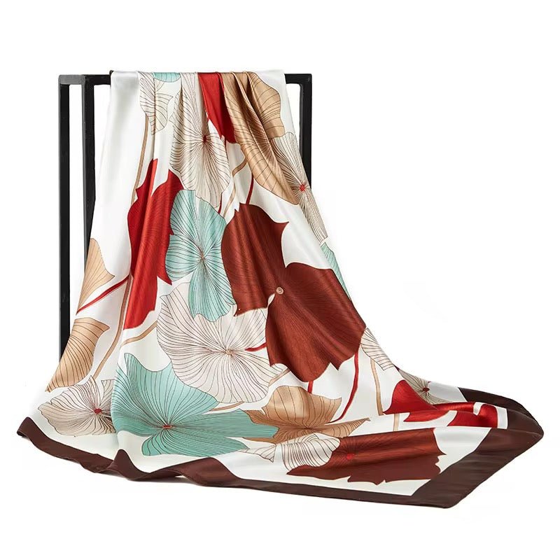 Large Satin Silk Square Scarf – Elegant Floral Print Neck, Hair, Head Wrap for Women UK